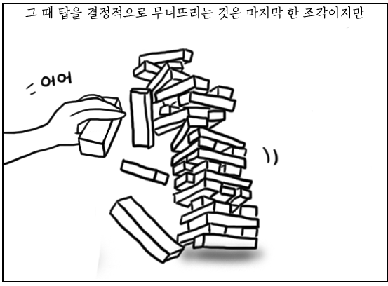 근데 웬걸 메가 테라에 오고 나서 스윙이라는 GUI를 처음 마주쳤고 할 때마다 든 생각은 'css 언제 와? ' 였다. 얼른 이 주차가 끝나길 바라면서 'css 야, 내가 정말 잘할게. 다시 돌아와 주겠니? 따위의 멘트를 날리고 싶을 정도로ㅋㅋㅋㅋ 스윙으로 완벽한 화면을 구현하시는 분들 보면 존경스럽기도 하고, 내 패널들의 상태는 아래의 젠가 상태처럼 하나라도 빠지면 와르르 무너질 듯한 느낌이었다.