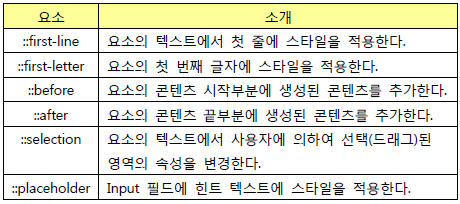 오늘 진행했던 과제 중에 가상 요소 선택자라는 처음 보는 속성이 등장해서 정리 겸 til 을 작성한다!