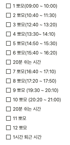 당분간 이 뽀모도로 스케줄대로 지내면서 시간을 유동적으로 수정할 예정이다. 잘 지켜보자구~!~