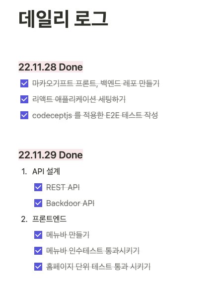 | 레벨 테스트 작업 로그 #1 - E2E Test 작성하기 (22.11.28 TIL) (0) | 2022.11.28 |