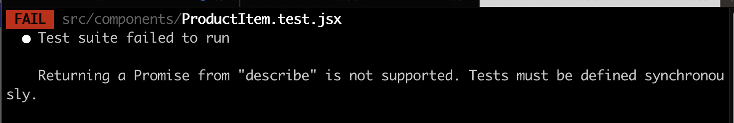 describe 에서는 비동기처리를 하지 못한다고 한다. 그래서 describe 에 있는 async 를 없애주고 it 문 안쪽으로 옮겨주었다.
